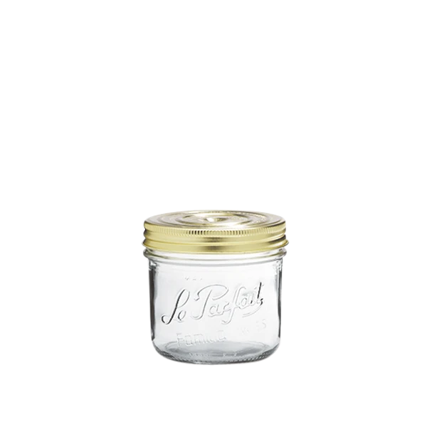 Le Parfait Familia Wiss jars come in 7 different sizes. Replacement lids and sealing caps are available for purchase.