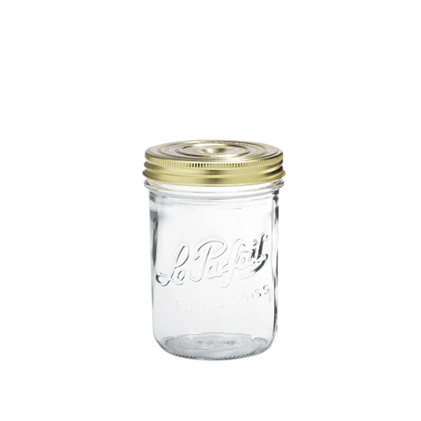 Le Parfait Familia Wiss jars come in 7 different sizes. Replacement lids and sealing caps are available for purchase.