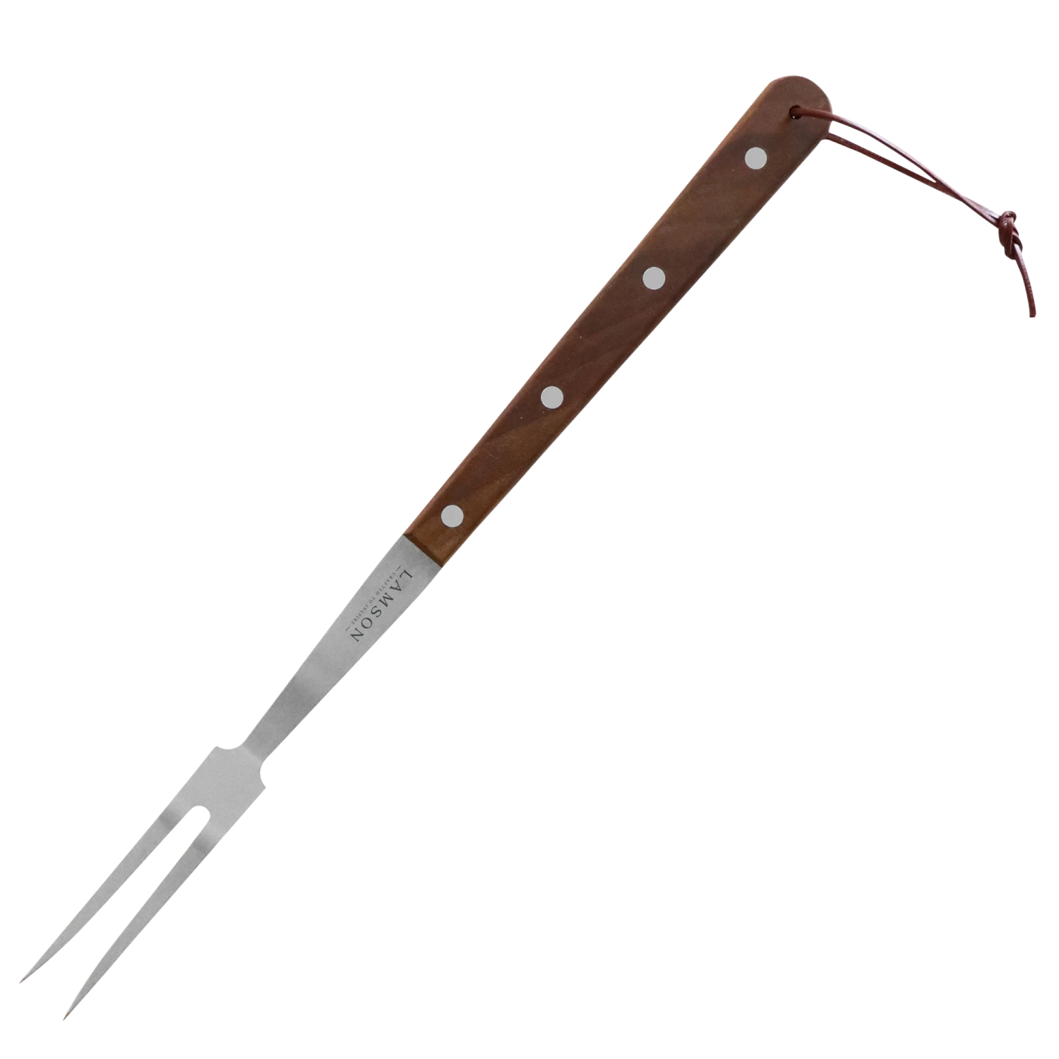 This versatile two-tine fork is prepared to handle all of your grilling needs, from the largest steak to a rack of ribs. Includes a rawhide loop for easy hanging.