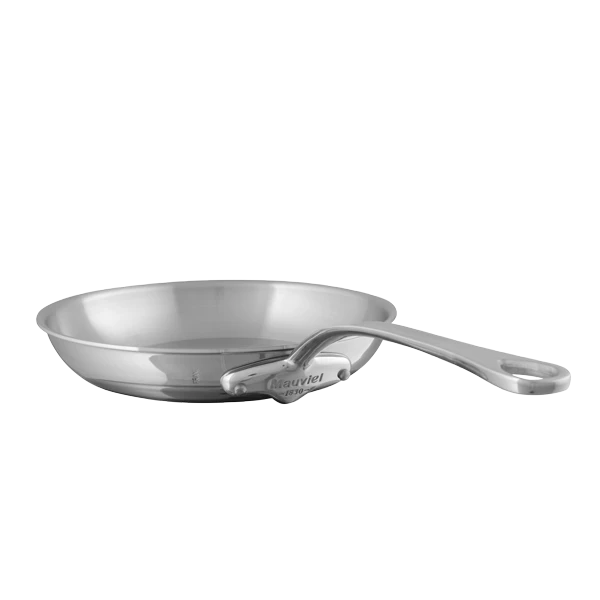 The Mauviel stainless steel frying pans are made up of 5 layers including 3 layers of internal aluminium to aid conductivity. These frying pans heat fast, cool fast and offer superior cooking control.