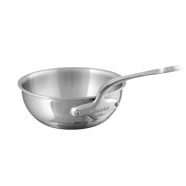 Perfect for using as you would a sauté pan. However, the curved sides allow easy access to the sides of the pan when deglazing to prepare a sauce.