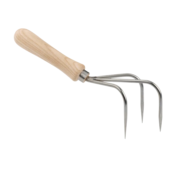 The hand cultivator has three sharp, bent tines which are used to break up and aerate the soil. It is the ideal tool to use before planting or sowing or when the soil becomes compacted.