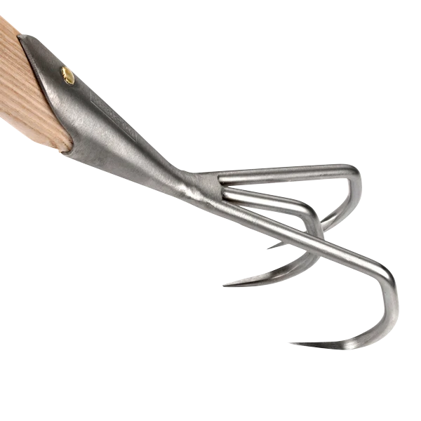 This cultivator has three sharp, bent tines which are used to break up and aerate the soil. The combination of the conical shaped tines with the angle at which this cultivator is set make for a great aerating tool.
