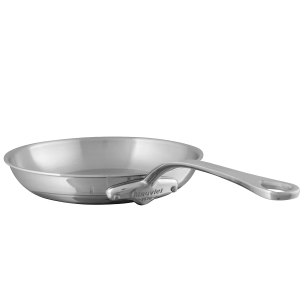 The Mauviel stainless steel frying pans are made up of 5 layers including 3 layers of internal aluminium to aid conductivity. These frying pans heat fast, cool fast and offer superior cooking control.