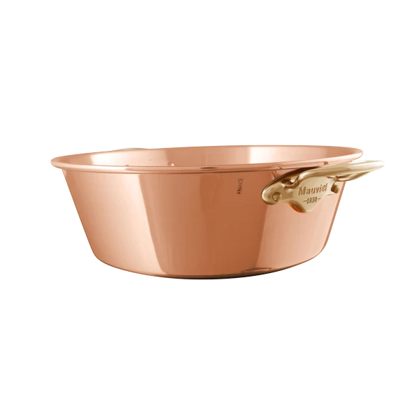 Due to their exceptional heat conductivity and even heat distribution, copper pans are the ultimate jam-making pans. The wide base means more of the fruit is in contact with the heat, the tapered sides allow for easier stirring and the wide top promotes fast evaporation. This all adds up to a shorter cooking time, which means the flavour, colour and texture of the fruit does not get cooked away.