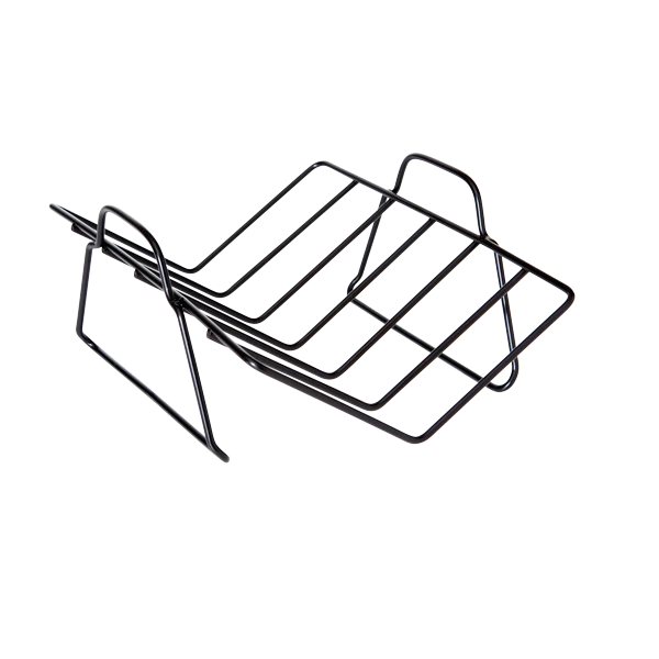 The feet of the roasting rack ensure that meat is lifted up from the bottom of the pan, while the V-shape allows fat to drain away from the meat.