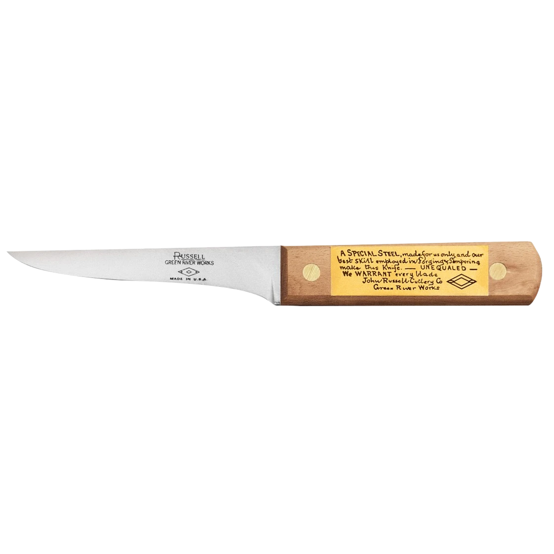 The blade on this knife is stiff and tough, making it easy to debone hearty meats like beef and pork. It features a classic high-carbon steel blade, with an individually ground and honed edge.