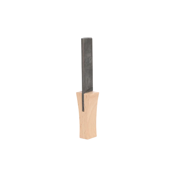 This axe file is a fine-toothed iron file with two faces and a small wooden handle. The handle is thicker near the file blade to give a good grip. The axe file is used to repair a damaged and heavy worn edge, prior to sharpening. The file is normally used with water but can be used dry.