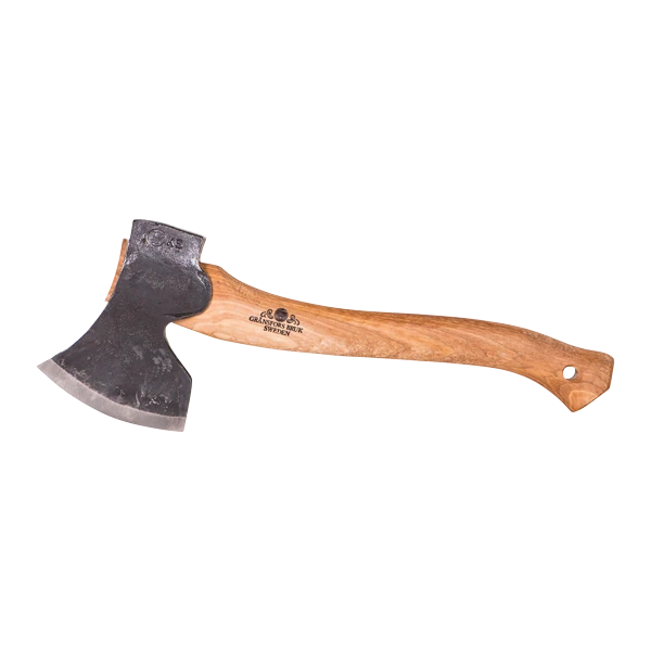 The handle has an uneven surface, giving good friction for a firm grip. The axe is also available with a carved handle, giving even better grip.