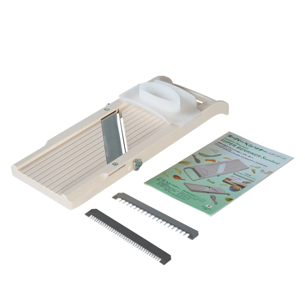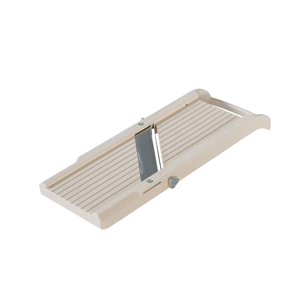 The Benriner Japanese mandoline is used to achieve even slices and cuts, as well as perfect julienne strips of fruits and vegetables. It has a 6.4cm slicing area with an adjustable stainless steel blade. The super sharp slicer allows for a variety of slicing thickness options, ranging from 0.3mm to 5mm.