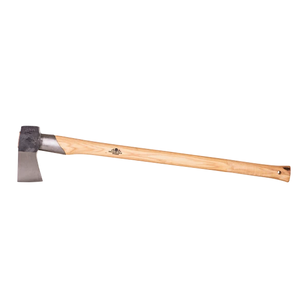 This axe can be used for medium-sized firewood. It is forged and ground to a concave, quite thin blade at the bit. It cuts quickly and easily into the wood and then effectively splits it as the broader section pushes apart the wood.