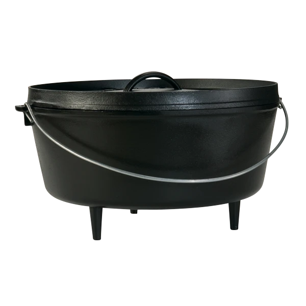 The Camp Oven is the pot that does it all! The flanged lid holds hot coals while the integral legs allow the oven to sit perfectly over the coals. The lid inverts for use as a griddle. The bail handle is for use with a tripod.
