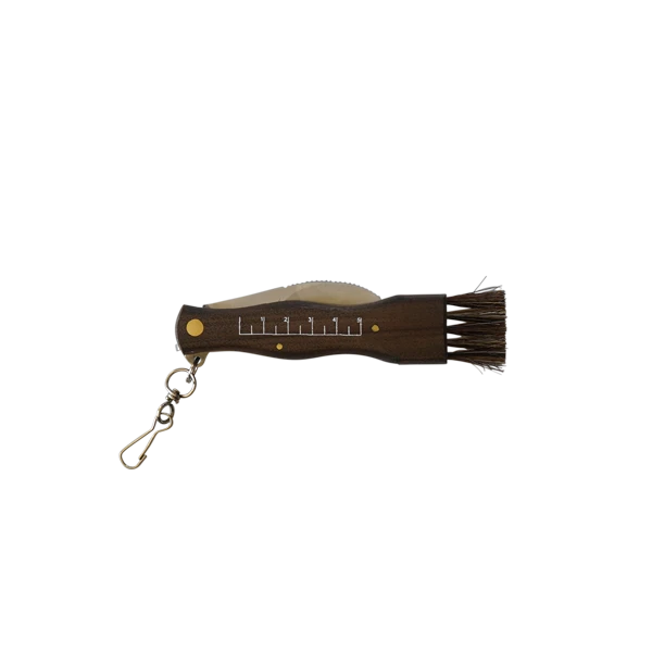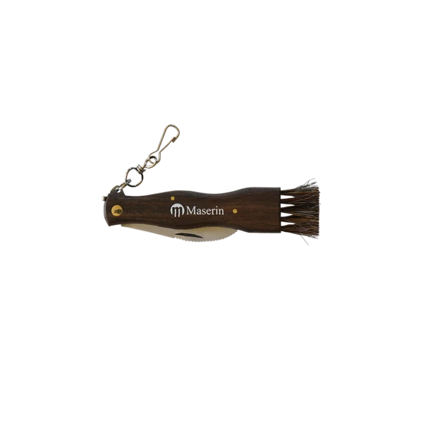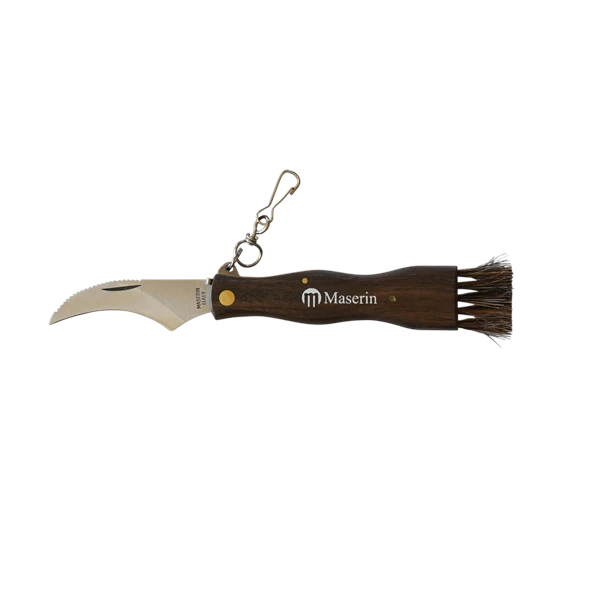 This is the first model of mushroom knife made by the Italian company, Maserin. It is equipped with an ergonomic walnut handle with a natural bristol brush to dust the dirt from the mushroom surface. The curved blade allows the user to cut the mushroom simply and effectively.