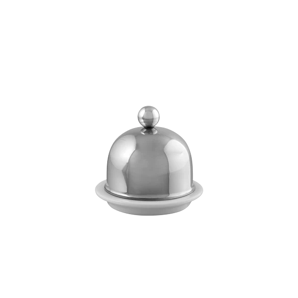Porcelain Butter Dish With Stainless Steel/Chrome Lid
