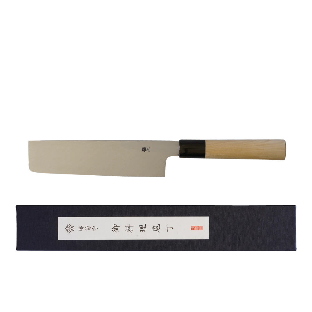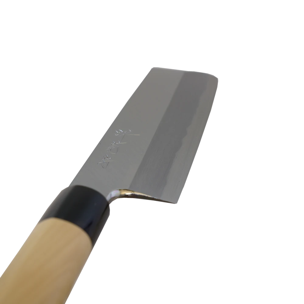 The Usuba is a traditional Japanese-style vegetable knife. It is ideal for cutting fruits and vegetables that are served raw. It has a single bevel grind with a thin rectangular-shaped blade, resembling a cleaver.