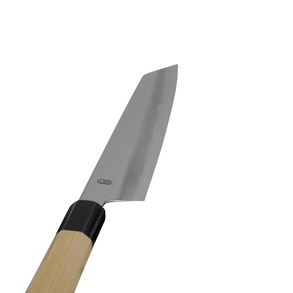 The term ‘kiritsuke’, or K-tip, refers to the acute angle of the knife tip. The K-tip is very handy for detailed knife tasks. However, the user will need to perform these tasks with care to prevent the point of the knife from being damaged.