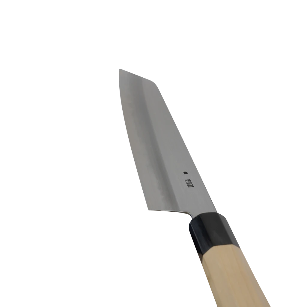 The term ‘kiritsuke’, or K-tip, refers to the acute angle of the knife tip. The K-tip is very handy for detailed knife tasks. However the user will need to perform these tasks with care to prevent the point of the knife from being damaged.