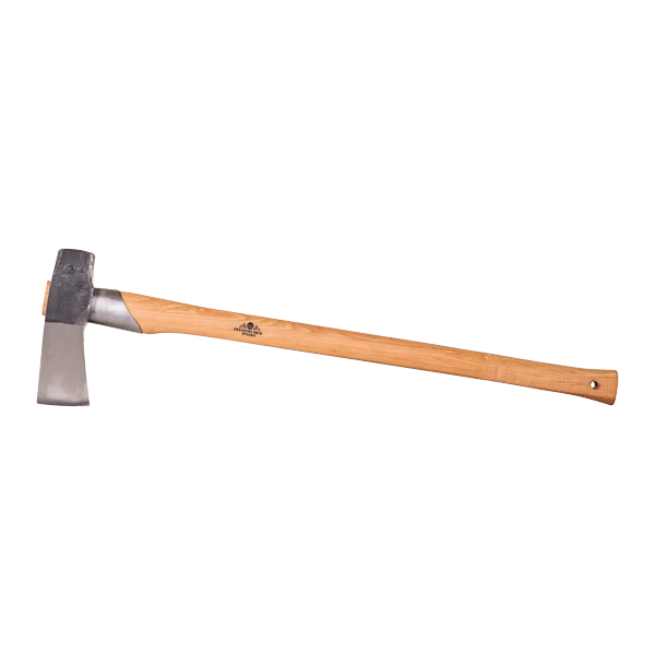 The Splitting Maul can be used for splitting very thick and knotty chunks of wood. It is forged and ground to a concave, quite thin blade at the bit. The axe cuts quickly and easily into the wood and then effectively splits it as the broader section pushes apart the wood.