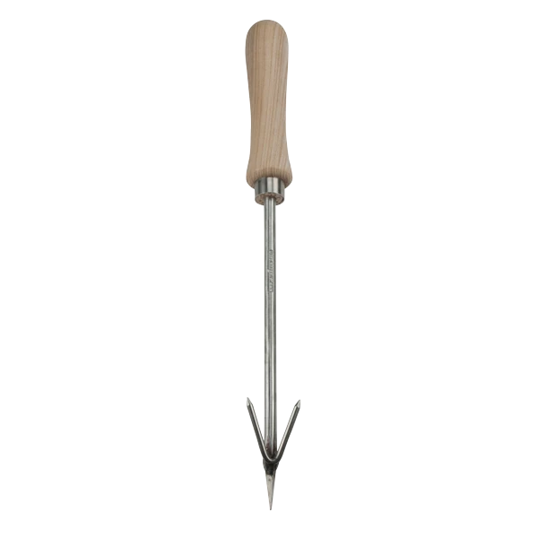 The unique shaped and precisely angled head of this tool allows precise weeding around established plants. It is easy to push into the soil to remove the roots of deep and tap-rooted weeds allowing their removal rather than cutting them off.